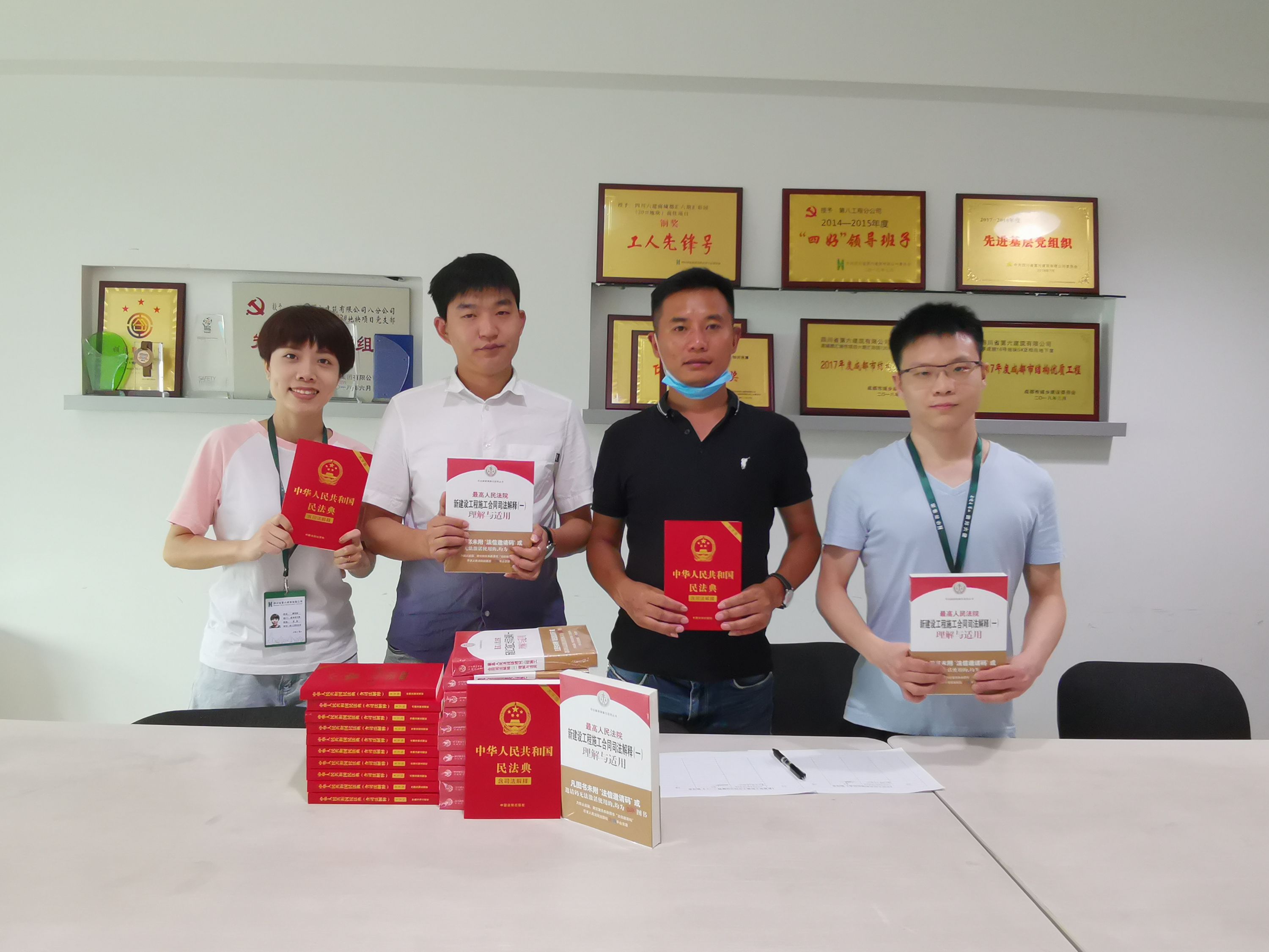 八分公司法務(wù)部門在走訪基層項目中發(fā)現(xiàn),項目部在處理一些法律事務(wù)時因?qū)ㄖI(lǐng)域的專項法律條款不甚了解而存有疑惑。分公司立足基層項目需求,秉承為基層群眾們辦實(shí)事的服務(wù)理念,特向基層項目贈送了《民法典》和《新建工合同司法解釋一》。